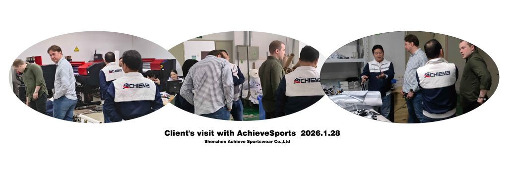 During the visit, the client was accompanied by the Achieve Sportswear team on a walk through of the factory. The tour covered key stages of the production workflow, including design preparation, digital printing, sublimation transfer, cutting, sewing, quality inspection, and packaging. This provided the visitor with a clear overview of how custom hockey jerseys and team apparel are produced from concept to finished product.